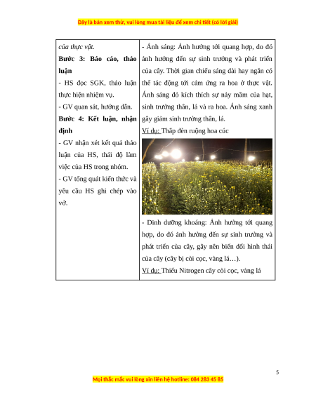 Giáo án Các nhân tố ảnh hưởng đến sinh trưởng và phát triển ở thực vật Sinh học 11 Cánh diều