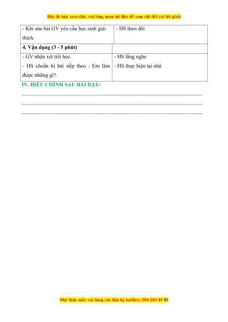 IV. ĐIỀU CHỈNH SAU BÀI DẠY: