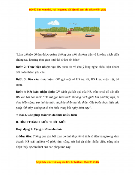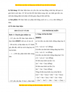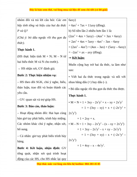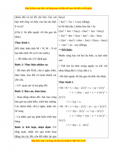 doanh, HS trải nghiệm về phép tính cộng, trừ hai đa thức nhiều biến, cũng như