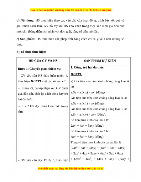 giá, dẫn dắt, chốt lại cách cộng hay trừ a.SA = a.(x.x) = ax2 (đồng). hai đa thức.