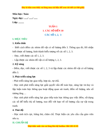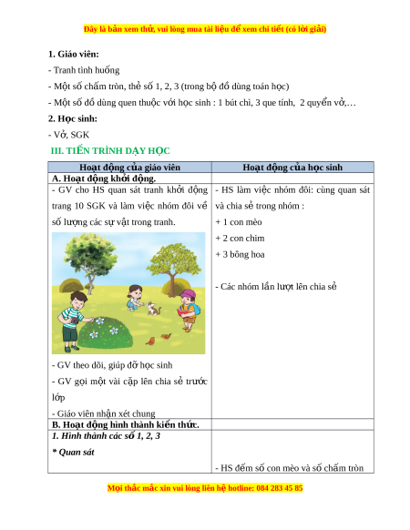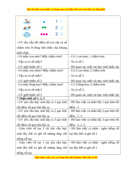 Đây là bản xem th , vu ử i lòng mua tài li u ệ đ xe ể m chi ti t (c ế ó l i ờ gi i ả ) 1. Giáo viên: - Tranh tình huống - M t ộ số chấm tròn, th s ẻ 1, 2, 3 ( ố trong b đ ộ dùng t ồ oán h c) ọ - M t