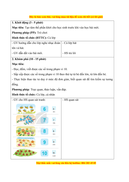 BÀI 2: CÁC SỐ 6, 7, 8, 9, 10 (3 tiết)