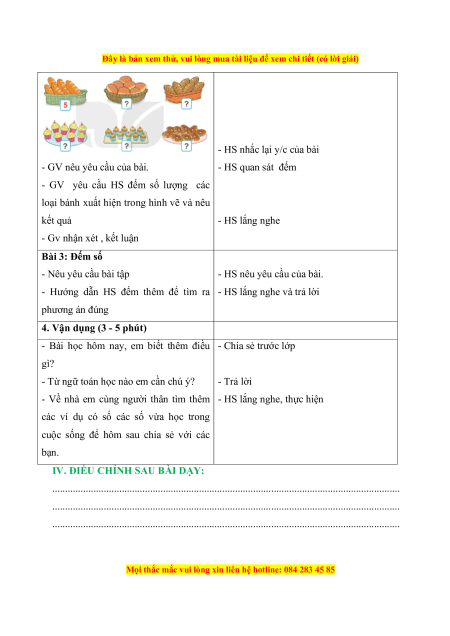 - Hướng dẫn HS đếm thêm để tìm ra - HS lắng nghe và trả lời phương án đúng 4. Vận dụng (3 - 5 phút)
