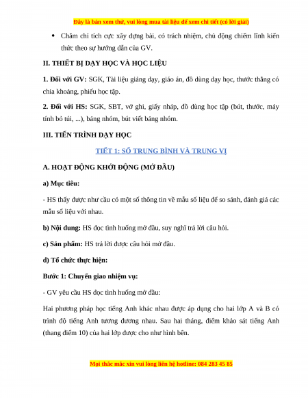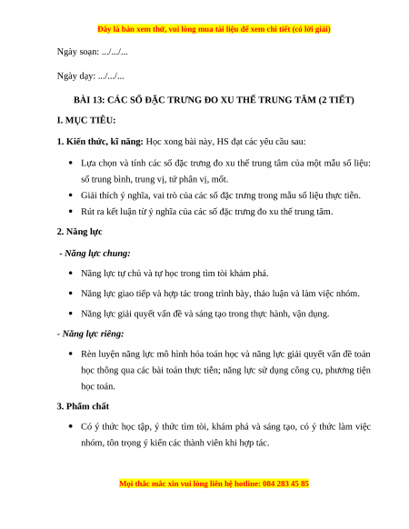 BÀI 13: CÁC SỐ ĐẶC TRƯNG ĐO XU THẾ TRUNG TÂM (2 TIẾT) I. MỤC TIÊU: