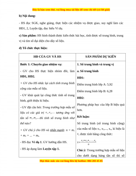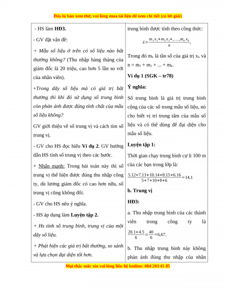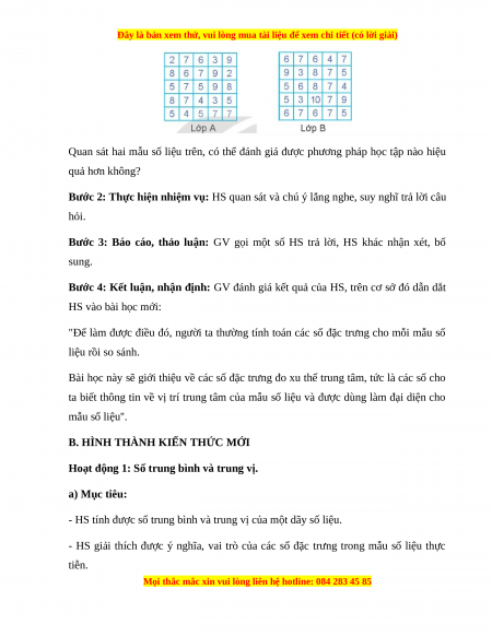 Hoạt động 1: Số trung bình và trung vị. a) Mục tiêu: