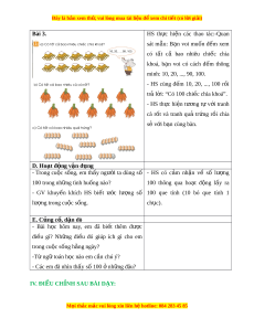 cà rốt và tranh quả tr ng ứ r i ồ chia sẻ v i ớ b n ạ cùng bàn. D. Hoạt đ ng v ộ n d ậ ng ụ - Trong cu c ộ s ng, ố em th y ấ ngư i ờ ta dùng số - HS có c m ả nh n ậ về số lư ng ợ 100 trong nh ng t ữ ình hu ng nào? ố 100 thông qua ho t ạ đ ng ộ l y ấ ra - GV khuy n ế khích HS bi t ế ư c ớ lư ng