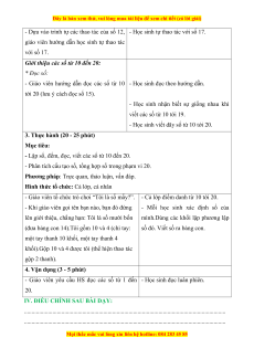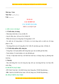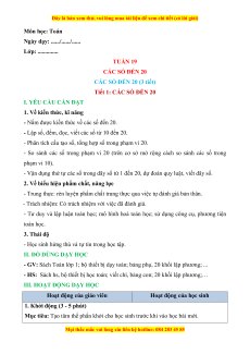Ngày dạy: ....../....../...... Lớp: .............. TUẦN 19 CÁC SỐ ĐẾN 20