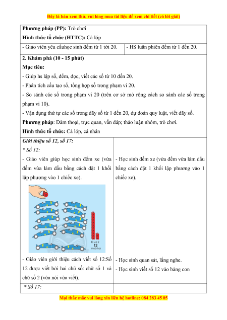 - HS luân phiên đếm từ 1 đến 20. 2. Khám phá (10 - 15 phút) Mục tiêu: