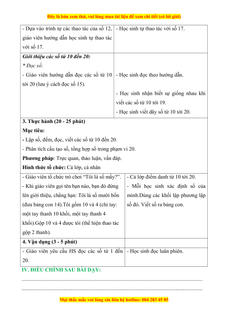 - Lập số, đếm, đọc, viết các số từ 10 đến 20.
