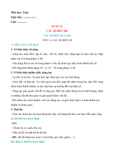 Ngày dạy: ....../....../...... Lớp: .............. TUẦN 23 CÁC SỐ ĐẾN 100