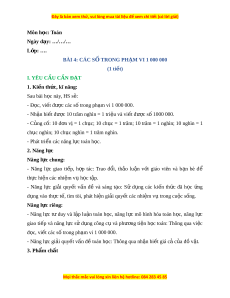 I. YÊU CẦU CẦN ĐẠT 1. Ki n t ế h c, kĩ ứ năng: Sau bài h c ọ này, HS s : ẽ - Đ c, vi ọ t ế đư c ợ các số trong ph m ạ vi 1 000 000. - Nh n bi ậ t ế đư c
