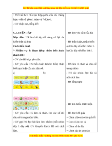 ự riêng: Tư duy và l p ậ lu n ậ toán h c, ọ mô hình hóa toán h c, ọ gi i ả quy t ế v n đ ấ t ề oán h c, ọ giao ti p t ế oán h c. ọ 3. Phẩm ch t ấ : - Ph m ẩ ch t ấ : yêu nư c ớ - Tích h p: ợ Toán h c và cu ọ c ộ s ng, ố T nhi ự ên và Xã h i ộ II. THIẾT B D Ị ẠY H C Ọ VÀ H C Ọ LI U Ệ 1. Đ i ố v i ớ giáo viên - Giáo án, SGK, SGV. - 1 thẻ trăm, 10 kh i ố l p ậ phư ng, ơ hình v ẽ bài luy n ệ t p ậ 2 và mô hình đ ng ồ h ồ 2 kim M i