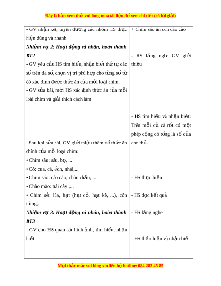 ầ HS làm cá nhân, tìm các số r i ồ - HS đ c ọ k t ế qu ả chia s t ẻ rong nhóm b n. ố + Chim chào mào ăn qu ả i ổ - GV g i ọ HS đ c ọ bài làm theo nhóm (m i