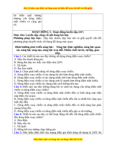 ủ ampekế và vôn kế xoay chi u, ề sử d ng ụ đư c ợ chúng để đo cư ng ờ độ và hi u ệ đi n ệ thế hi u ệ d ng ụ c a ủ dòng đi n ệ xoay chi u. ề Phư ng ơ pháp d y ạ h c: ọ D y ạ h c ọ nhóm; d y ạ h c ọ nêu và gi i ả quy t ế v n ấ đề; phư ng ơ pháp thuy t ế trình; s d ử ng đ ụ ồ dung tr c ự quan Đ nh h ị ư ng ớ phát tri n năng l ể c ự : Năng l c t ự h c nghi ự m ệ , năng l c quan s ự át, năng l c s ự áng t o, năng l ạ c ự trao đ i ổ . Ph m ẩ ch t ấ t t ự in, t l ự p, ậ giao ti p. ế 1. Tác d ng c ụ a dòng đi ủ n xoay ch ệ i u ề - GV: Làm TN bi u ể di n ễ nh hì ư nh 35.1