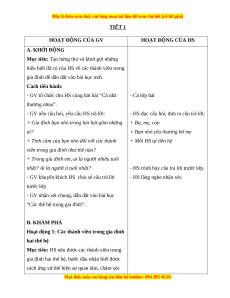TIẾT 1 HOẠT ĐỘNG CỦA GV HOẠT ĐỘNG CỦA HS A. KHỞI ĐỘNG