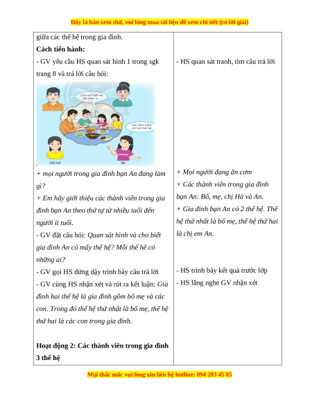 Hoạt động 1: Các thành viên trong gia đình hai thế hệ