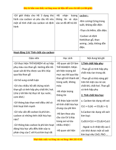 cacbon có những tính chất hóa học kim loại: cầu của GV (cháy nào? trong oxi và tỏa CuO(r)+C(r)→ CO2(k)+Cu(r)