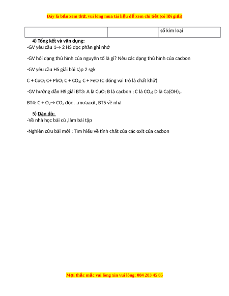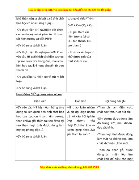 -GV thông báo cacbon là phi kim hoạt nhiều nhiệt )