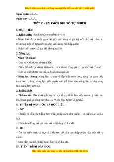 ữ các hàng và giá trị m i ỗ chữ số ( theo vị trí) trong m t ộ số t nhi ự ên đã cho vi t ế trong h t ệ h p ậ phân. - Nh n ậ bi t ế đư c ợ s L ố a Mã không quá 30 2. Năng l c ự - Năng l c ri ự êng: + Đ c và vi ọ t ế được số t nhi ự ên. + Bi u di ể n đ ễ ư c ợ s t ố nhi ự ên cho trư c t ớ hành t ng gi ổ á tr các ị ch s ữ c ố a ủ nó. + Đ c và vi ọ t ế đư c