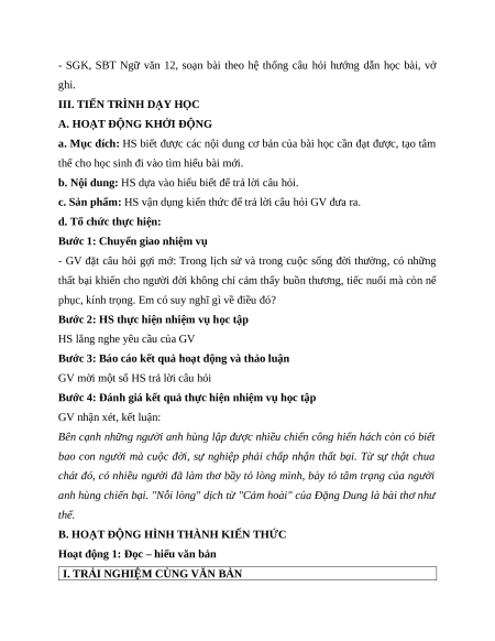 Giáo án Cảm hoài Ngữ Văn 12 Kết nối tri thức