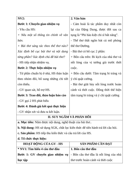 a. Mục tiêu: Nắm được nội dung, nghệ thuật của bài thơ..