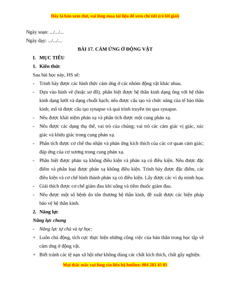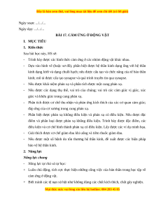BÀI 17. CẢM ỨNG Ở ĐỘNG VẬT I. MỤC TIÊU 1. Kiến thức Sau bài học này, HS sẽ: