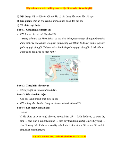 dùng một cây búa gõ nhẹ vào phần gân ở khớp gối (Hình 17.1), kết quả là gây nên