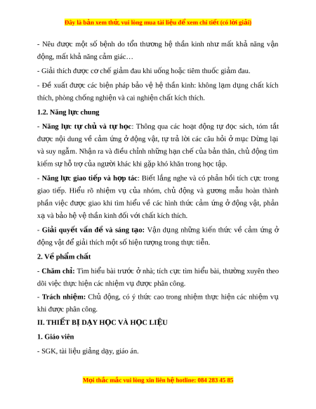 Đây là bản xem th , vu ử i lòng mua tài li u ệ đ xe ể m chi ti t (c ế ó l i ờ gi i ả ) - Nêu đư c ợ m t ộ số b nh ệ do t n ổ thư ng ơ hệ th n ầ kinh như m t ấ khả năng v n ậ đ ng, ộ m t ấ khả năng c m ả giác… - Gi i ả thích đư c ợ c ch ơ ế gi m ả đau khi u ng ho ố c t ặ iêm thu c gi ố m ả đau. - Đề xu t ấ đư c ợ các bi n ệ pháp b o ả vệ hệ th n ầ kinh: không l m ạ d ng ụ ch t ấ kích
