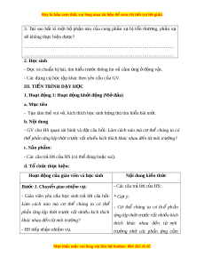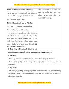 …………………………………………………………………………………… 2. H c ọ sinh - Đ c và chu ọ n b â bài ị , tìm hi u t ể rư c t ớ hông tin v c ề m ả ng ứ đ ở ng v ộ t ậ . - Các d ng c ụ h ụ c ọ t p khác t ậ heo yêu c u c ầ a ủ GV. III. TI N Ê TRINH D Y A H C O 1. Hoạt đ ng 1 ộ : Ho t ạ đ ng ộ kh i ở đ ng ( ộ M đ ở u) ầ a. Mục tiêu - T o t ạ âm th vui ế v , kí ẻ ch thích h c ọ sinh h ng t ứ hú tìm hi u bài ể m i ớ . b. N i ộ dung