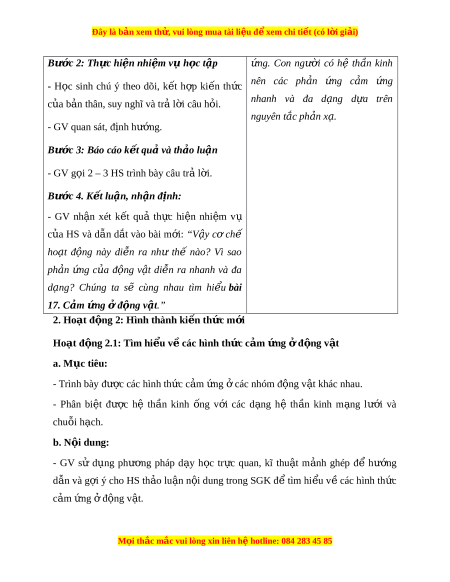 ch thích khác nhau đ n t ế m ừ ôi trư ng? ờ c. Sản phẩm: - Các câu trả l i ờ c a ủ HS (có th đúng ho ể c ặ sai). d. T ch ổ ức thực hi n: ệ Hoạt đ ng c ộ a gi ủ áo viên và h c s ọ inh N i ộ dung ki n t ế h c ứ Bư c ớ 1. Chuy n gi ể ao nhi m ệ v : ụ - Các câu trả l i ờ c a ủ HS: - Giáo viên yêu c u ầ h c ọ sinh trả l i ờ câu h i ỏ : * G i ợ ý: