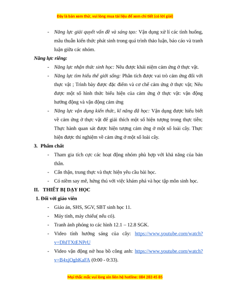 - Nêu được khái niệm và đặc điểm cảm ứng ở thực vật. Phân tích được vai