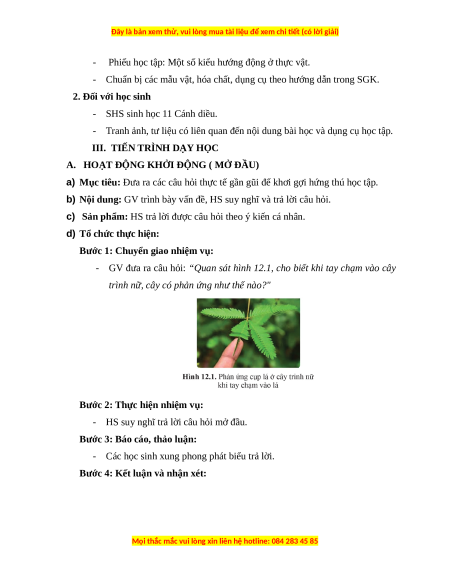 - GV đưa ra câu hỏi: “Quan sát hình 12.1, cho biết khi tay chạm vào cây