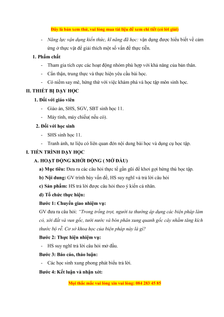 - Giáo án, SHS, SGV, SBT sinh học 11.