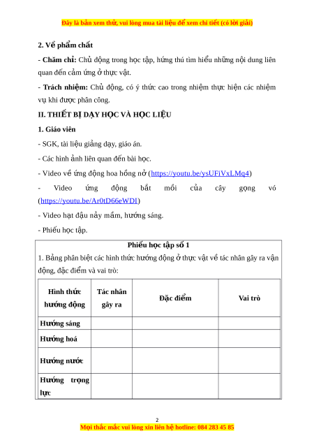 Đây là bản xem th , vu ử i lòng mua tài li u ệ đ xe ể m chi ti t ế (có l i ờ gi i ả ) 2. V ph ề ẩm ch t ấ - Chăm ch : i Chủ đ ng ộ trong h c ọ t p, ậ h ng ứ thú tìm hi u ể nh ng ữ n i ộ dung liên quan đ n ế c m ả ng ứ ở th c v ự t ậ . - Trách nhi m ệ : Chủ đ ng, ộ có ý th c ứ cao trong nhi m ệ th c ự hi n ệ các nhi m ệ v khi ụ đư c ợ phân công. II. THIÊT B D I AY H C O VÀ H C O LI U Ê 1. Giáo viên - SGK, tài li u g ệ i ng ả d y ạ , giáo án. - Các hình nh l ả iên quan đ n bài ế h c. ọ