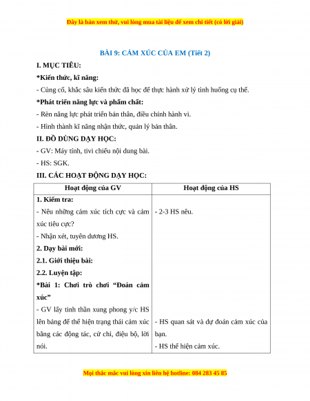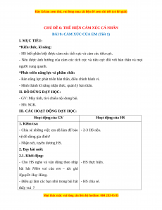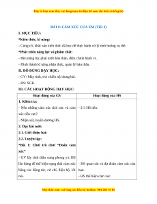 BÀI 9: CẢM XÚC CỦA EM (Tiết 1) I. MỤC TIÊU: