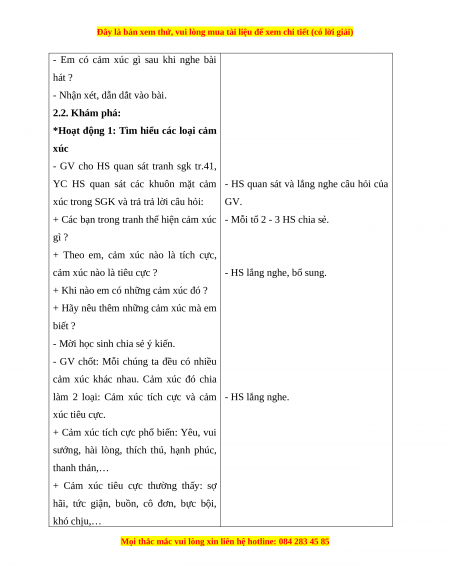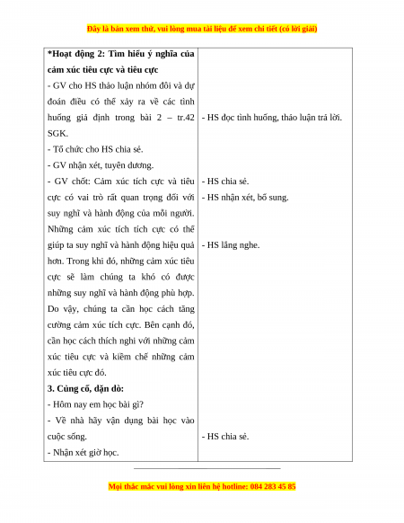 - HS biết phân biệt được cảm xúc tích cực và cảm cúc tiêu cực.