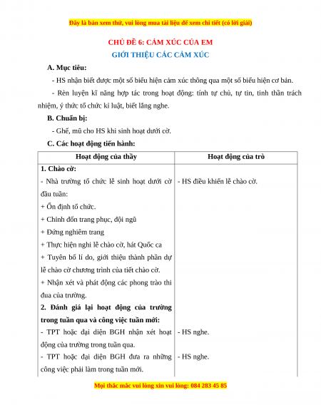 GIỚI THIỆU CÁC CẢM XÚC A. Mục tiêu: