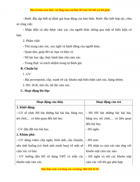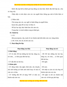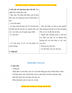 - Nhận diện và nêu được cảm xúc của người khác thông qua một số biểu hiện cơ bản. 2. Phẩm chất: