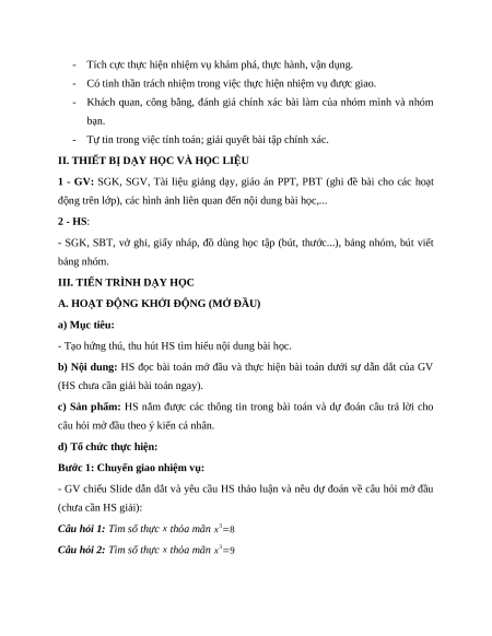 hỏi, HS nắm được khái niệm căn bậc ba của một số thực.