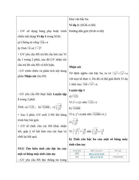 - Tính được căn bậc ba của một số thực bằng MTCT. b) Nội dung: