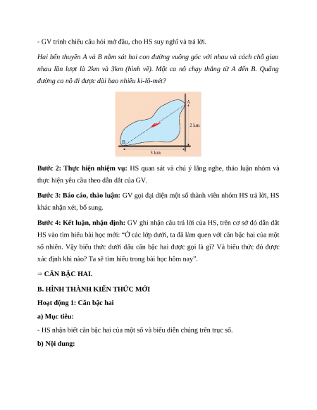 - Mô hình hóa toán học: mô tả các dữ kiện bài toán thực tế, giải quyết bài toán gắn với căn bậc hai.