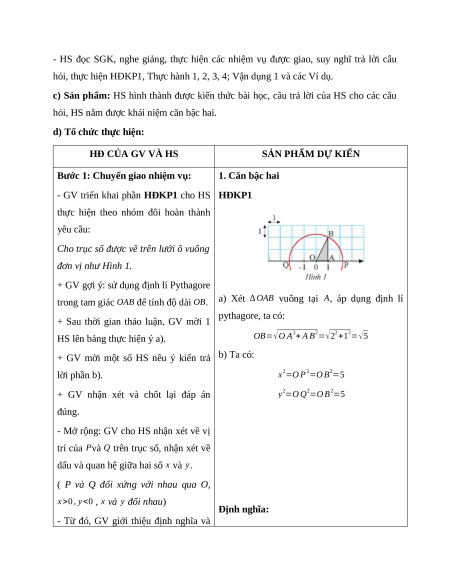 - HS nhận biết căn bậc hai của một số và biểu diễn chúng trên trục số. b) Nội dung: