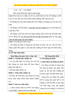Giáo án Cân bằng tự nhiên và bảo vệ môi trường Sinh học 8 Cánh diều
