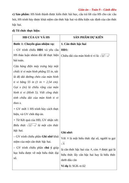 Giáo án – Toán 9 – Cánh diều
