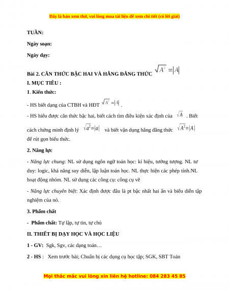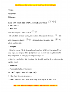 Bài 2. CĂN THỨC BẬC HAI VÀ HẰNG ĐẲNG THỨC I. MỤC TIÊU :