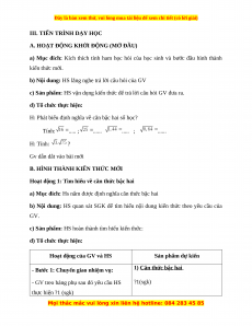 8ST$ Hs nắm được định nghĩa căn thức bậc hai