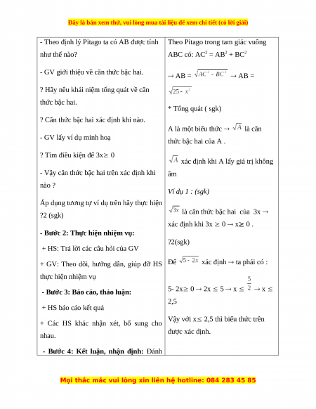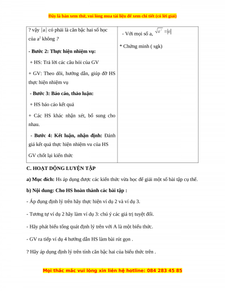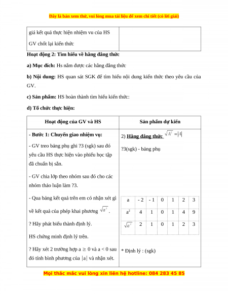 Giáo án Căn thức bậc hai và hằng đẳng thức Toán 9 Học kì 1