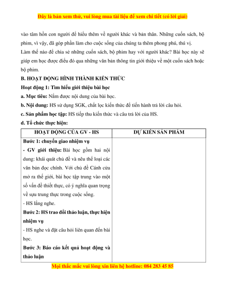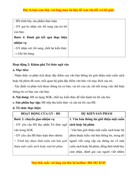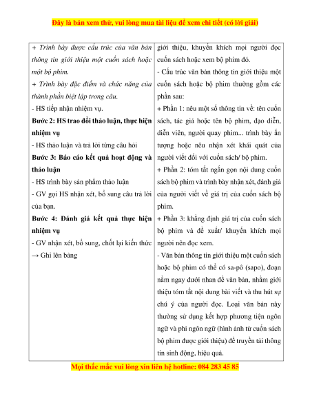 giúp em học được điểu đó qua những văn bản thông tin giới thiệu về một cuốn sách hoặc bộ phim.