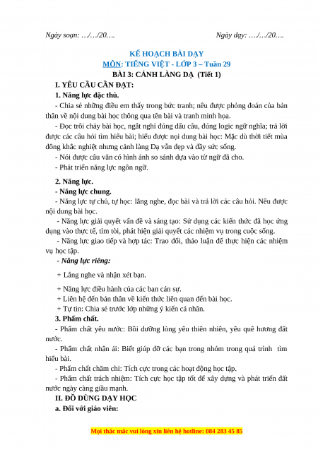 BÀI 3: CẢNH LÀNG DẠ (Tiết 1) I. YÊU CẦU CẦN ĐẠT: 1. Năng lực đặc thù.