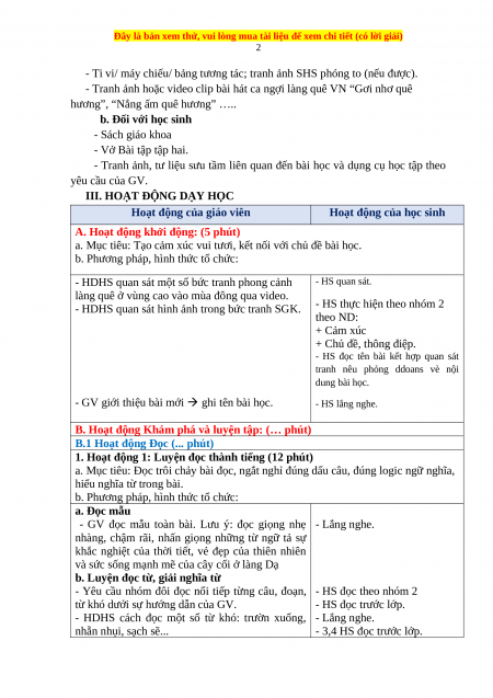 BÀI 3: CẢNH LÀNG DẠ (Tiết 2)
